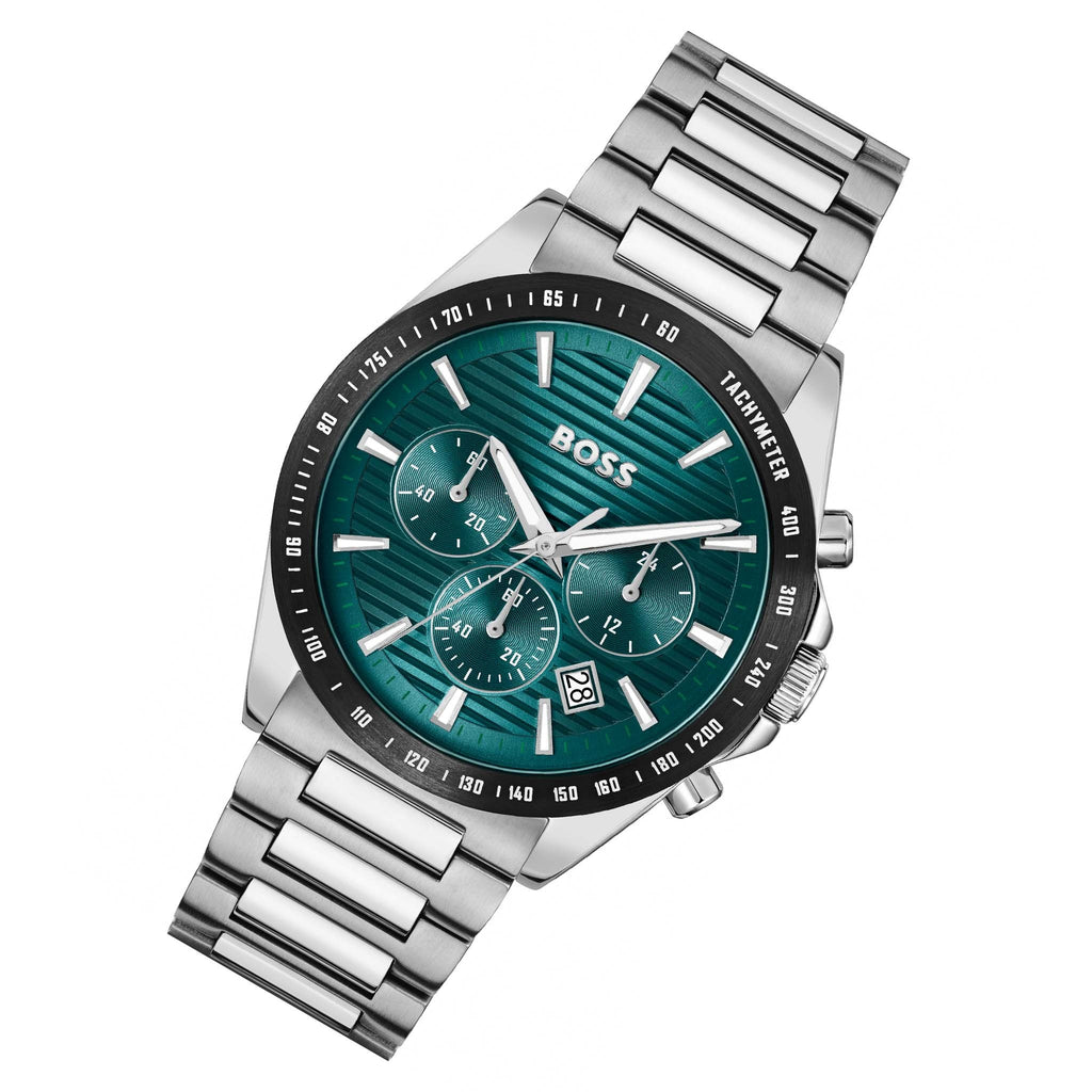 Hugo Boss Strike Chronograph Green Dial Silver Steel Strap Watch for Men - 1514241