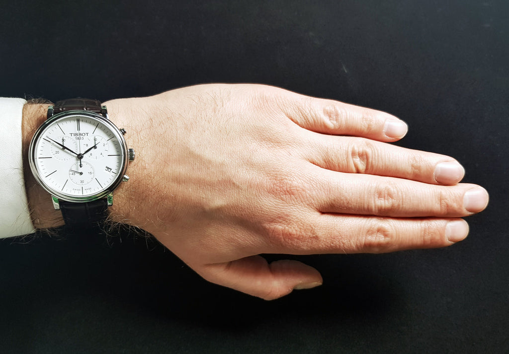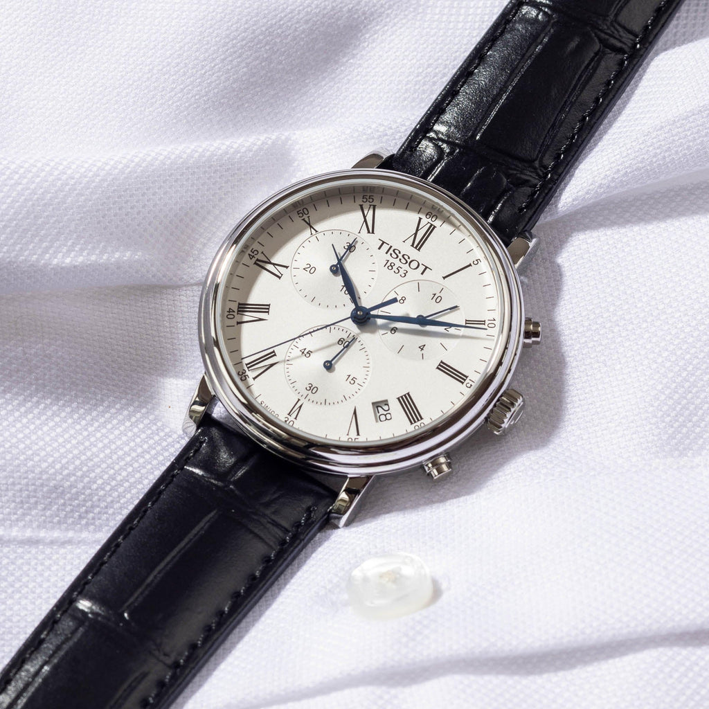 The sapphire crystal glass provides excellent clarity and scratch resistance, while the 50-meter water resistance makes it suitable for everyday wear and light water activities. Key features include a date window, deployment clasp for secure fastening, and a 10mm case thickness that balances presence on the wrist with comfortable everyday wear. The 20mm leather strap ensures a proper fit for standard men's wrists. A true Swiss-made classic, the Tissot Carson Premium Chronograph combines heritage craftsmanship with modern design—the perfect accessory for those who appreciate quality and timeless style.