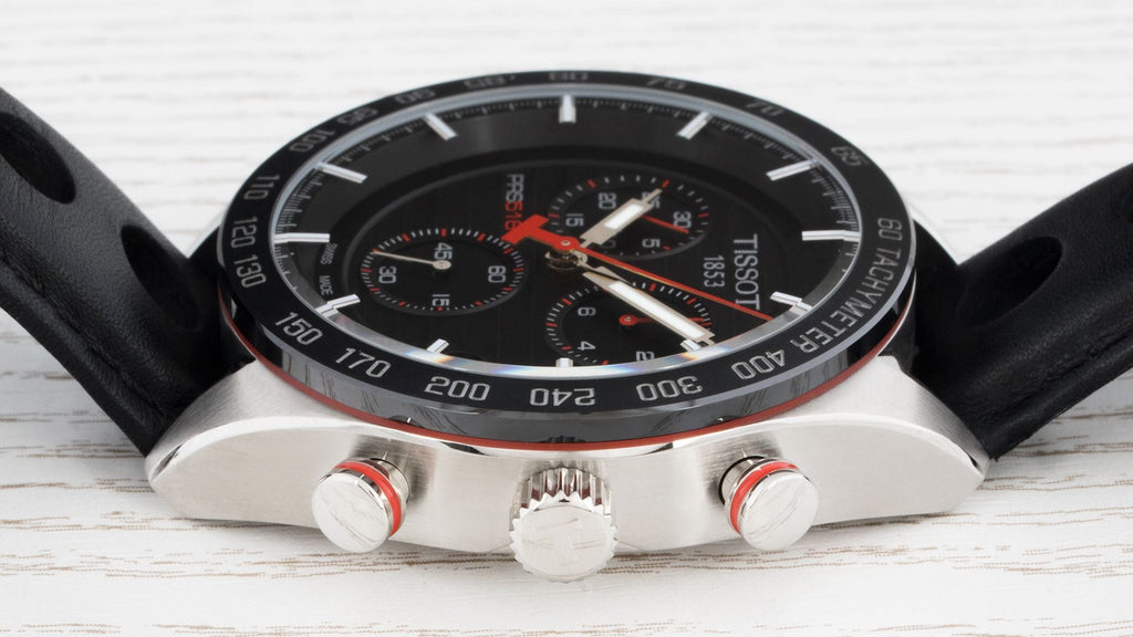 Tissot PRS 516 Chronograph Black Dial Black Leather Strap Watch For Men - T100.417.16.051.00