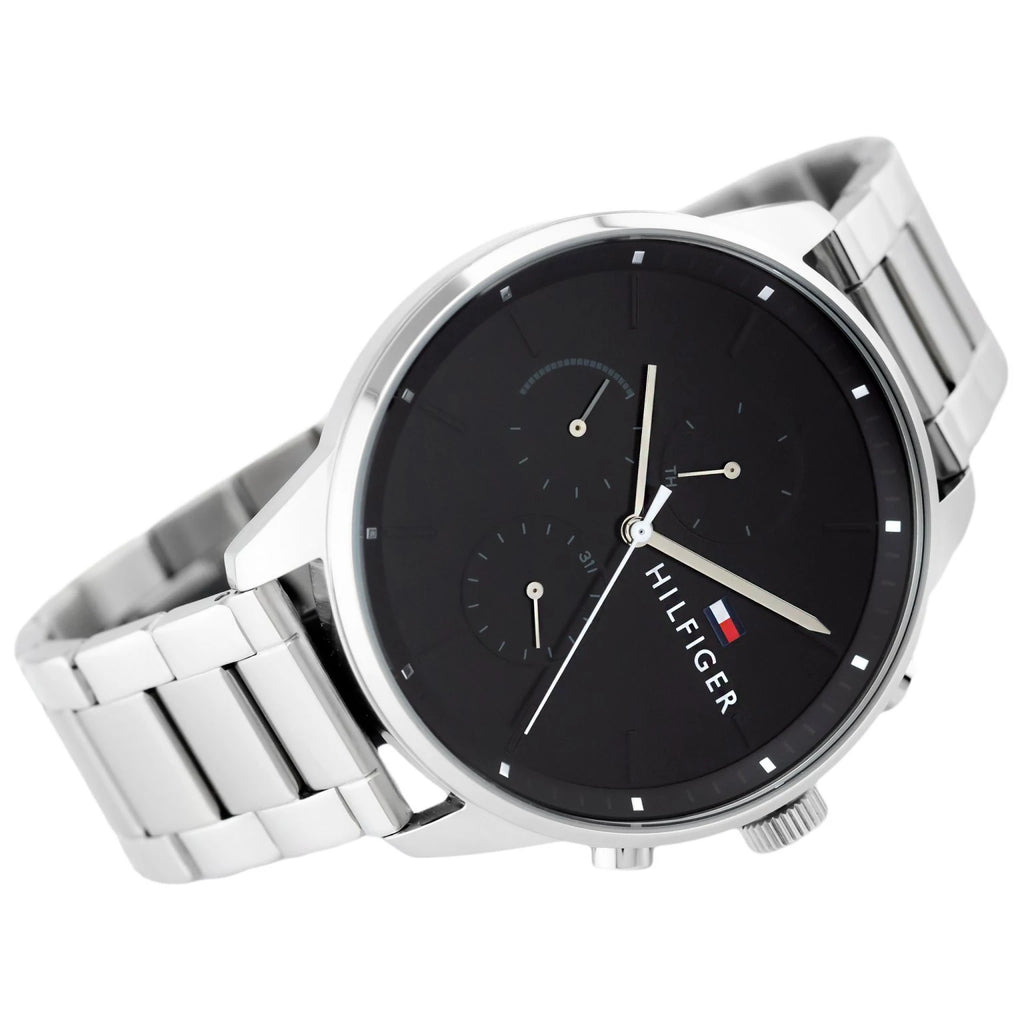 Tommy Hilfiger Chase Quartz Black Dial Silver Steel Strap Watch For Men - 1791485