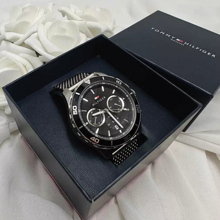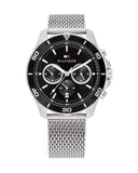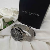 Tommy Hilfiger Jordan Chronograph Black Dial Silver Mesh Strap Watch For Men - 1792092
