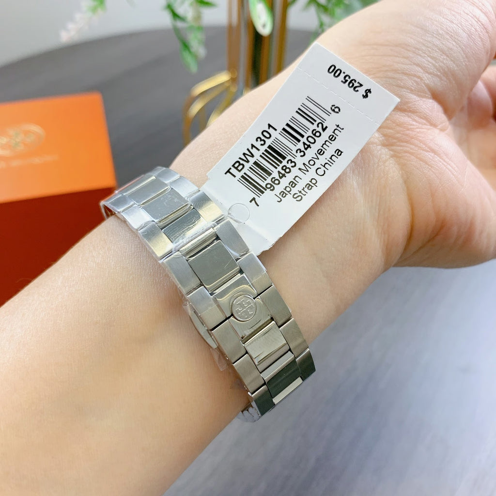 Tory Burch Collins White Dial Silver Steel Strap Watch for Women - TBW1301
