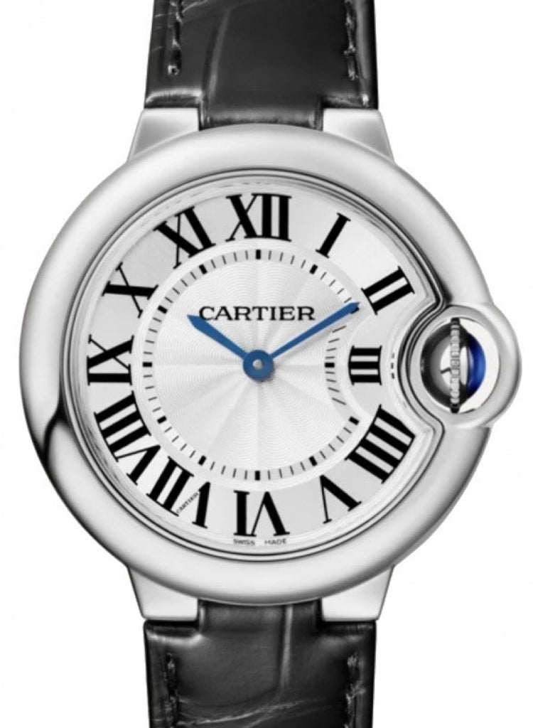 Cartier Ballon Bleu De Cartier Silver Dial Black Leather Strap Watch for Women - WSBB0034