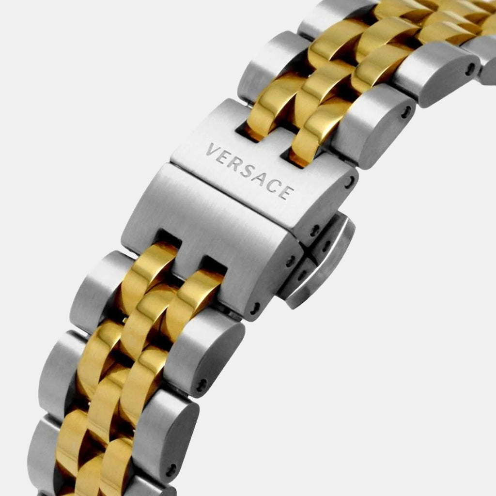 Elevate your style with the Versace Hellenyium Quartz watch, designed exclusively for women. Featuring a striking blue dial and a sophisticated two-tone steel strap, this timepiece combines luxury with durability. Its precise quartz movement ensures reliable timekeeping, while the elegant design complements both casual and formal looks. Make a statement of timeless elegance and refined taste with this exquisite Versace watch.