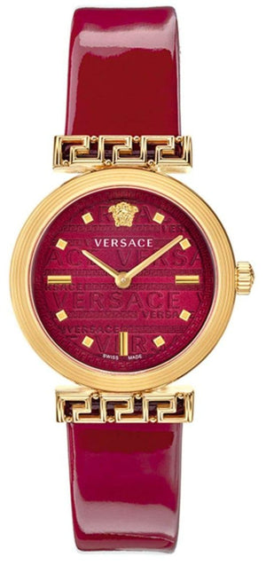Versace Greca Meander Red Dial Red Leather Strap Watch for Women - VELW00320