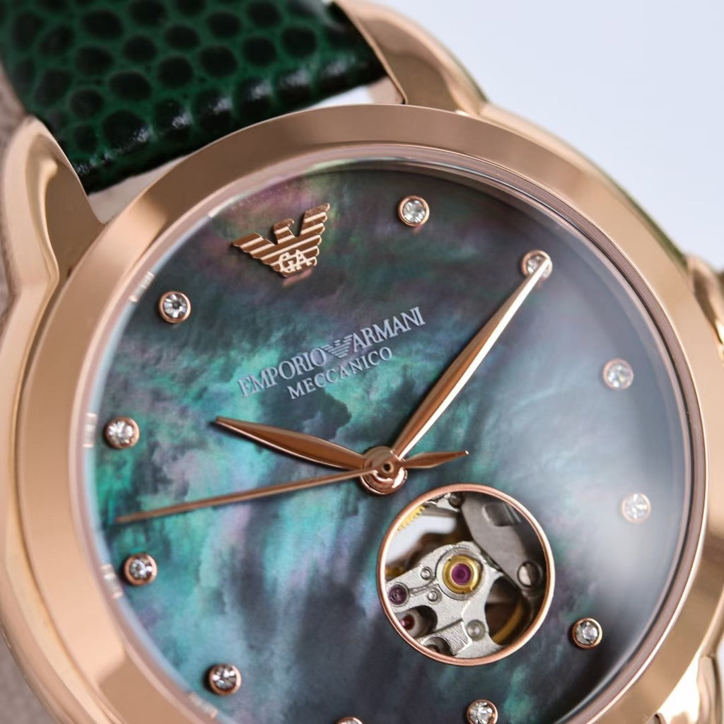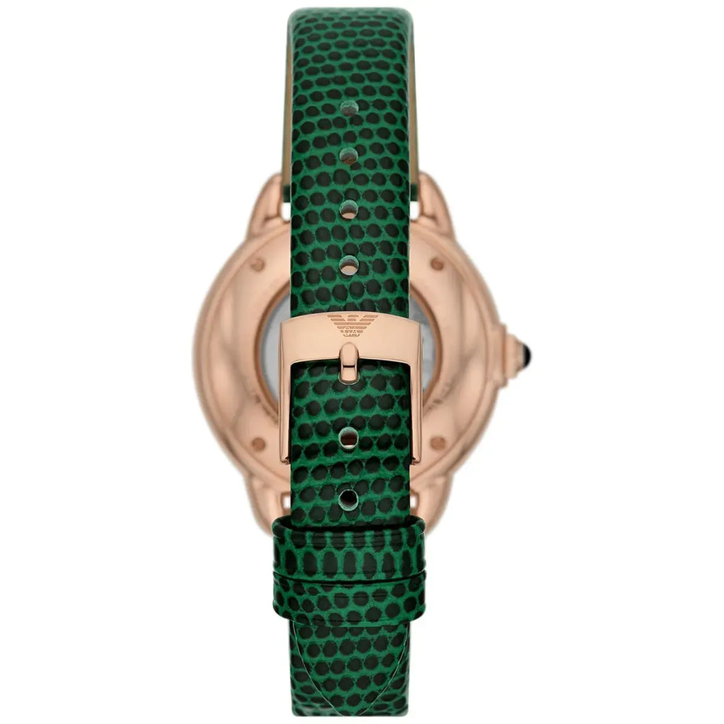 Emporio Armani Mia Meccanico Mother of Pearl Dial Green Leather Strap Watch for Women - AR60073