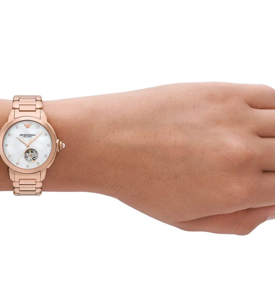 Emporio Armani Mia Meccanico Mother of Pearl Dial Rose Gold Steel Strap Watch for Women - AR60072