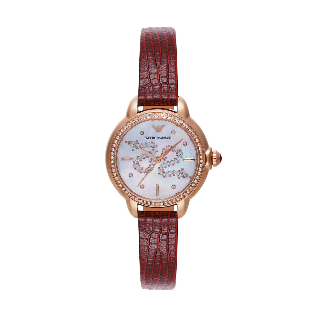 Emporio Armani Mia Mother of Pearl Dial Red Leather Strap Watch for Women - AR11646
