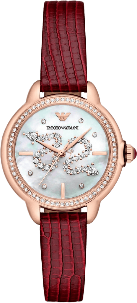 Elevate your everyday elegance with the Emporio Armani Mia, a timepiece that seamlessly blends sophistication with contemporary style. The luminous mother-of-pearl dial catches light beautifully, creating an ever-changing display that complements any outfit. Wrapped in a striking red leather strap, this watch makes a bold fashion statement while maintaining the refined craftsmanship Emporio Armani is renowned for. Perfect for the modern woman who refuses to compromise between style and substance, the AR11646 transforms your wrist into a canvas of understated luxury. Make every moment count with a watch that's as distinctive as you are.