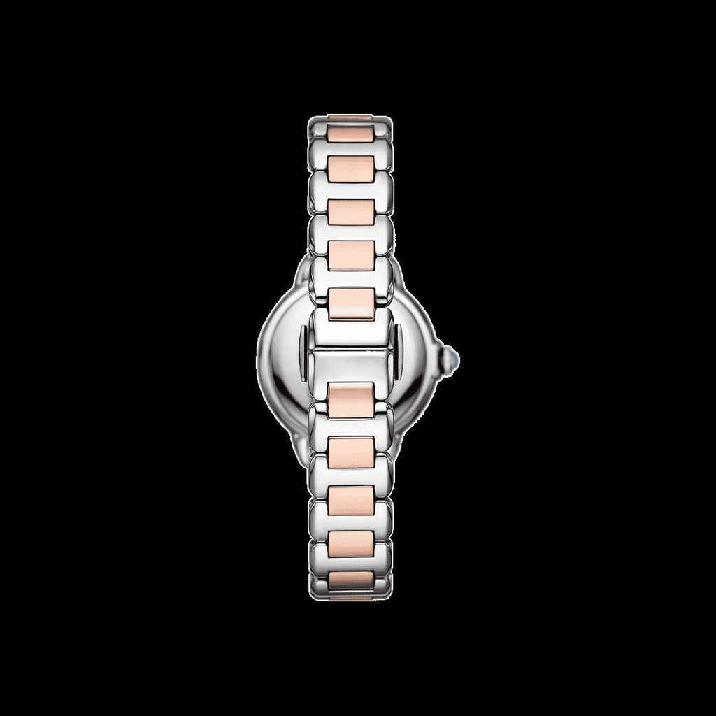 • Emporio Armani's 32mm watch features a blue sunray dial, three-hand movement and two-tone stainless steel bracelet
