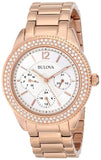 Bulova Crystal Silver Dial Rose Gold Steel Strap Watch for Women - 97N101