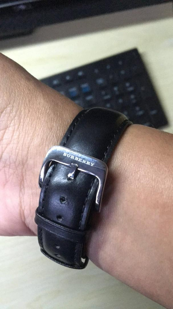 Black Smooth Leather Strap with Stainless Steel Pin Buckle.