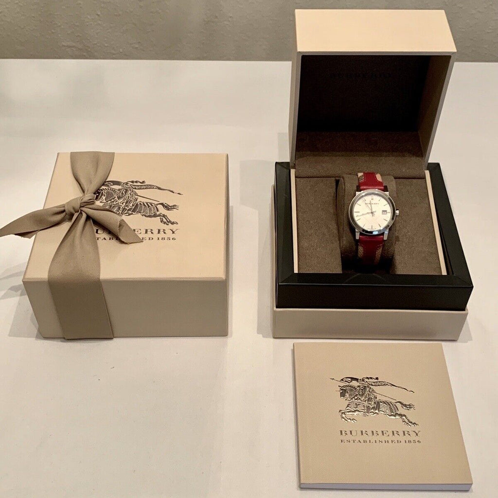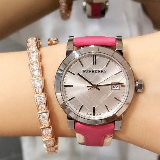 Burberry The City White Dial Haymarket Pink Leather Strap Watch for Women - BU9149