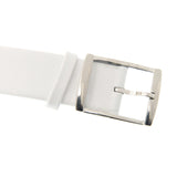 Stainless steel case with a white leather strap. Fixed stainless steel bezel. Silver dial with silver-tone hands. Index markers at the 3, 6 and 9 o'clock positions. Dial Type: Analog. Quartz movement. Scratch resistant mineral crystal. Pull / push crown. Solid case back. Square case shape. Case size: 24 mm. Case thickness: 7 mm. Band width: 16 mm. Tang clasp. Water resistant at 30 meters / 100 feet. Functions: hour, minute. Mark Series. Dress watch style. Watch label: Swiss Made. Calvin Klein Mark Silver Dial White Leather Ladies Watch K3R231L6.
