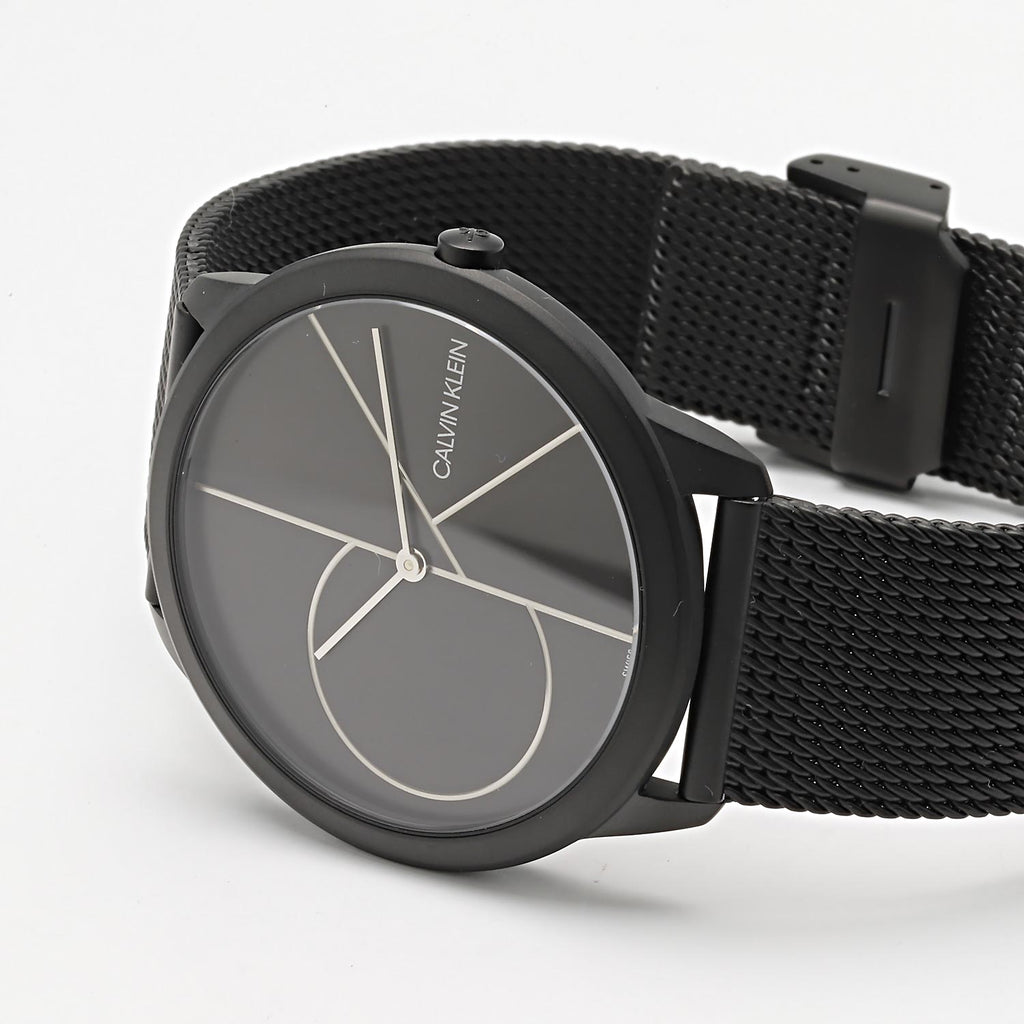 Calvin Klein Minimal Black Dial Black Mesh Bracelet Watch for Men - K3M5145X
