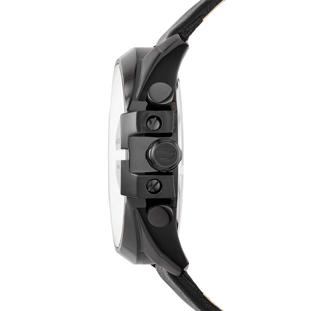 Diesel Mega Chief Chronograph Black Dial Black Leather Strap Watch For Men - DZ4323