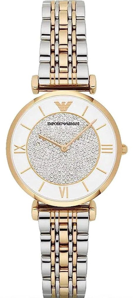 Emporio Armani Gianni T Bar Analog White Dial Two Tone Steel Strap Watch For Women - AR2076