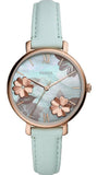 Fossil ES-4813 Jacqueline Leather Band Women Watch. The case is made out of rose gold stainless steel with a rose gold bezel, which stands for the high quality of the item, it has a multi color dial. This model has got 30 meters of water resistance. it can be worn in scenarios where it is likely to be splashed but not immersed in water and will be fine in rain. The watch is shipped with an original box and a guarantee from the manufacturer.