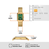 The rectangular Raquel watch is a new classic, updated for the current moment. Slim and versatile, this one-of-a-kind timepiece features a genuine malachite stone dial, three-hand date movement and a brushed and polished gold-tone 7-link bracelet.