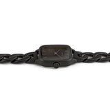 Black PVD stainless steel case and bracelet. Fixed black ion-plated G-shaped bezel. Sun-brushed black dial with silver tone hands and stick hour markers. Dial Type: Analog. Quartz movement. Scratch resistant sapphire crystal. Case diameter: 30 mm. Rectangle case shape. Jewelry clasp. Water resistant at 30 meters (100 feet). Functions: hours, minutes, seconds. Fashion watch style. Watch label: Swiss Made. Gucci 125 G-Gucci Series Bracelet Watch YA125403.
