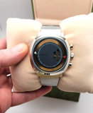In celebration of Chinese New Year (or 'Lunar New Year' as it's also known), Gucci prints its favourite Disney character on the latest iteration of the Grip watch. Honouring the year of the rat, Mickey Mouse is chilling at the bottom of the stainless steel dial - at six o'clock to be precise - and watches the three rotating disks tick as they tell the date and time. Fitted with a logo engraved bracelet strap, it sits comfortably on your wrist and allows you to keep track of the day ahead.
