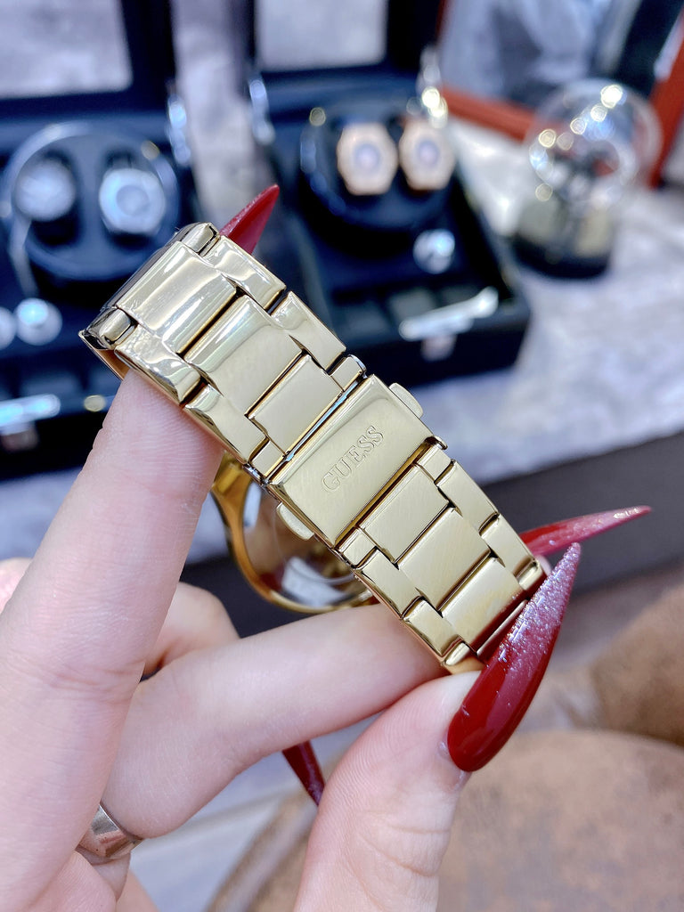 Guess Moonlight Diamonds Gold Dial Gold Steel Strap Watch for Women - GW0320L5