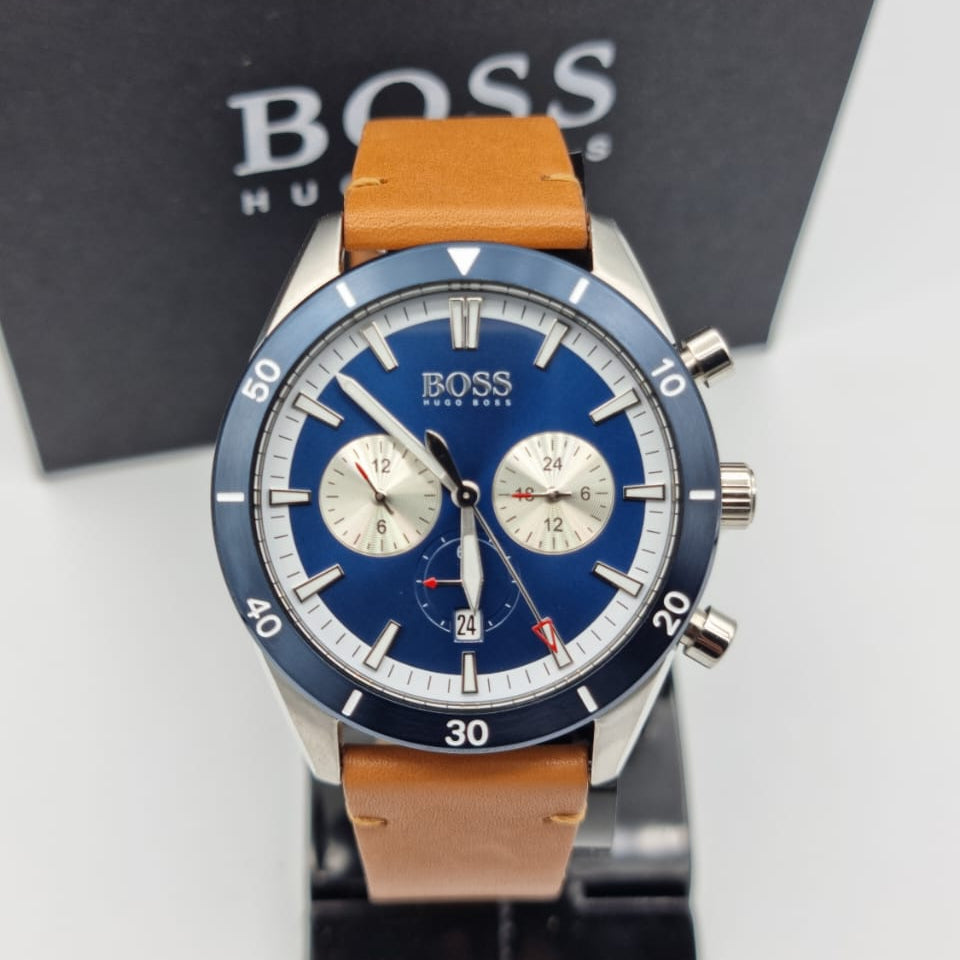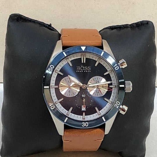 Hugo Boss Santiago Chronograph Blue Dial Brown Leather Strap Watch for Men - 1513860
