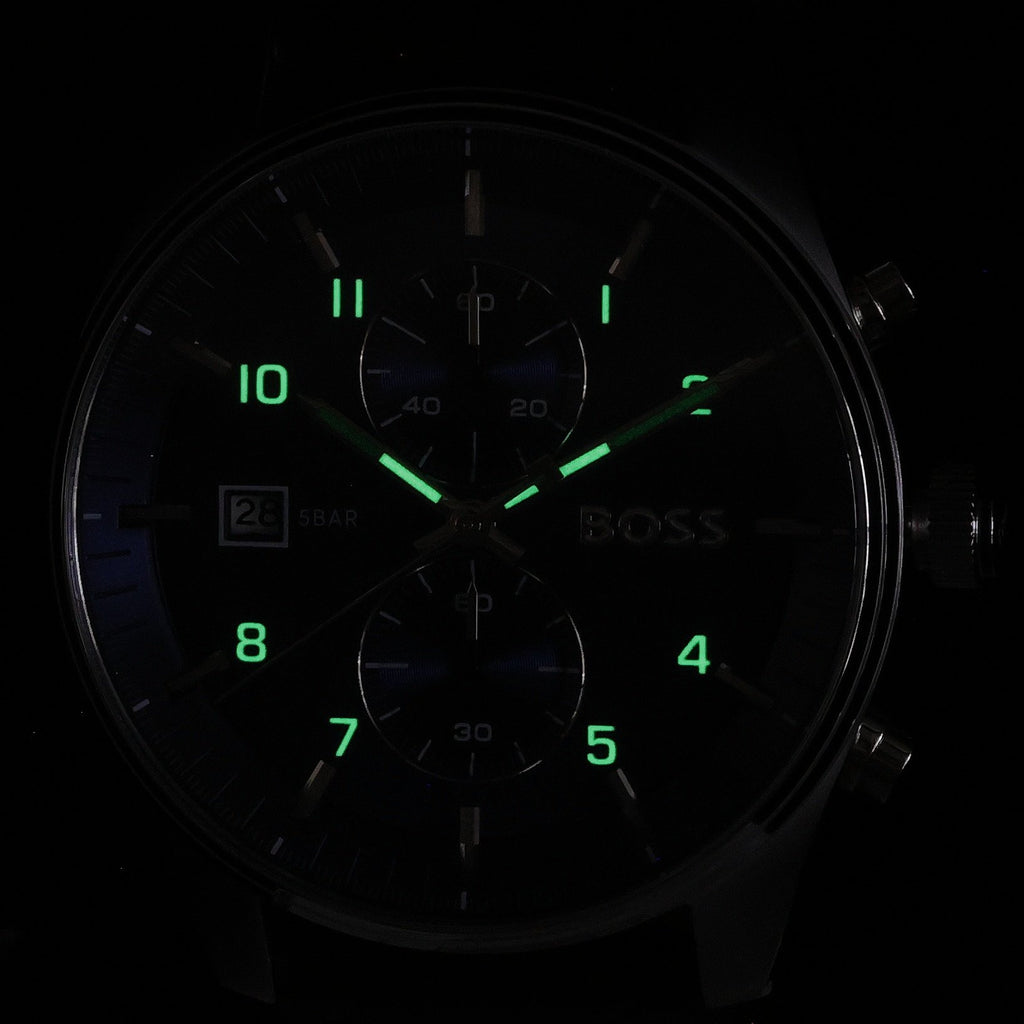 Hugo Boss Skytraveller Chronograph Blue Dial Brown Leather Strap Watch for Men - 1514194