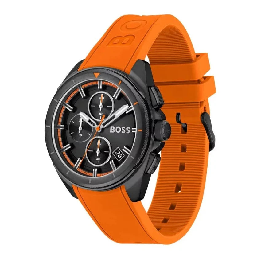 Hugo Boss Volane Chronograph Black Dial Orange Silicone Strap Watch for Men - 1513957
