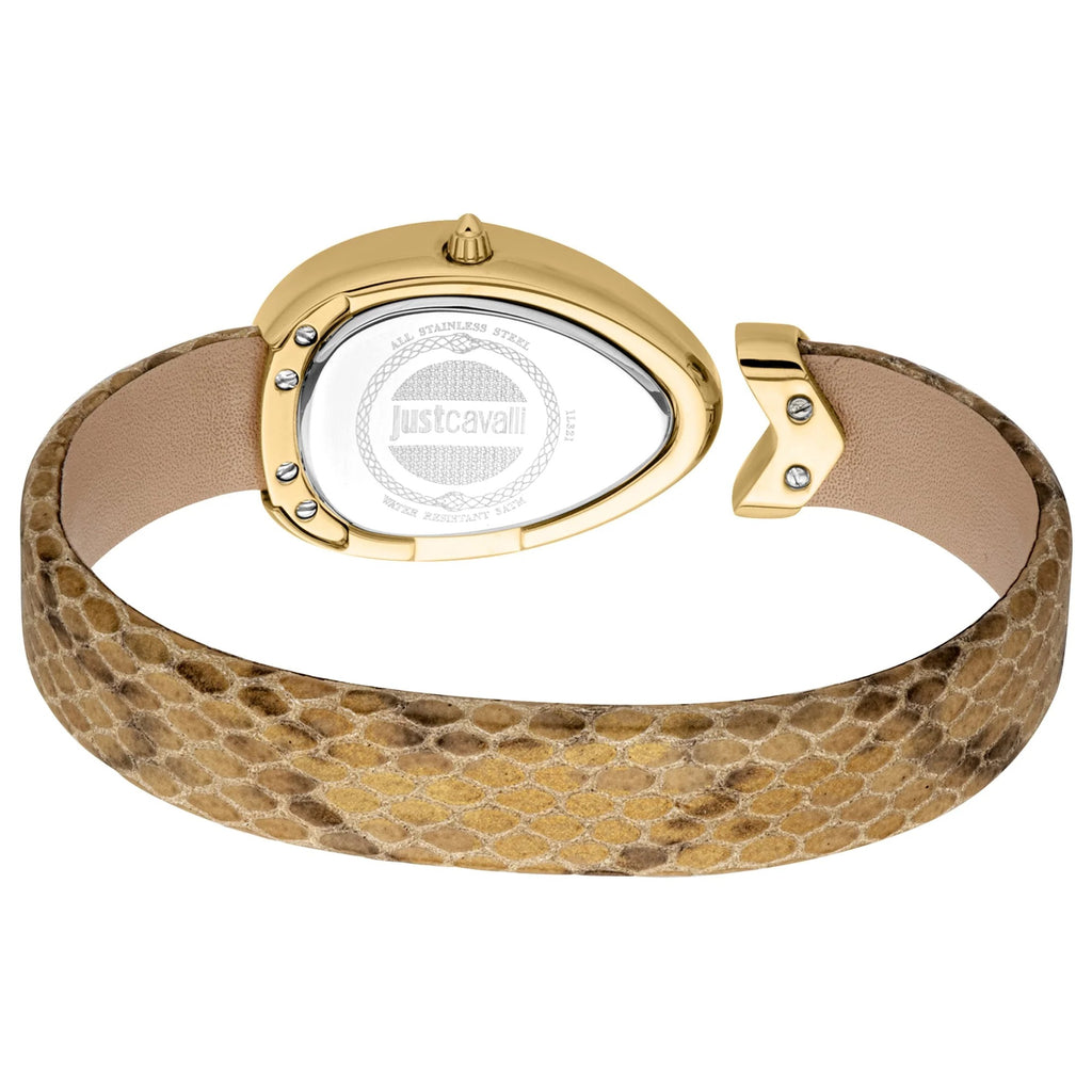 Just Cavalli Diversa Snake Mother of Pearl Dial Brown Leather Strap Watch for Women - JC1L321L0025
