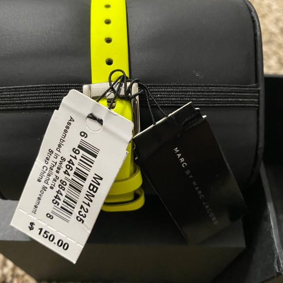 Elevate your style with the Marc Jacobs Henry white dial watch. Stand out with the neon yellow rubber strap and be confident in the quality of this designer watch. Make a statement and add a pop of color to any outfit with this sleek and eye-catching timepiece.