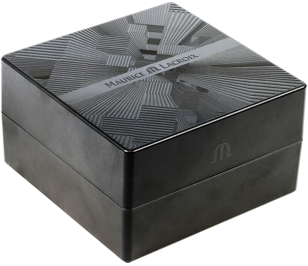Completing the look, the watch is paired with a luxurious brown leather strap featuring the Maurice Lacroix 'm' logo and a bronze pin buckle, offering both comfort and style. With a sapphire crystal and anti-reflective coating, this timepiece is built to last, making it a standout addition to any collection.