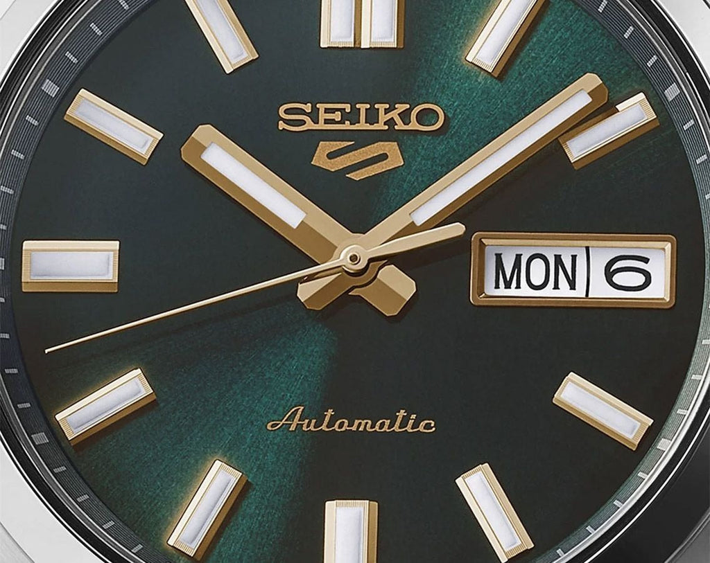 Seiko SRPL57K1 5 Sports SNXS Stainless Steel Automatic Watch is modern reinterpretation blends vintage charm with contemporary precision. Inspired by the original 1970s design, the watch features a striking green dial with elegant gold-toned hands and indices, reflecting timeless sophistication. The white LumiBrite coating ensures exceptional legibility, glowing long and bright in low light.