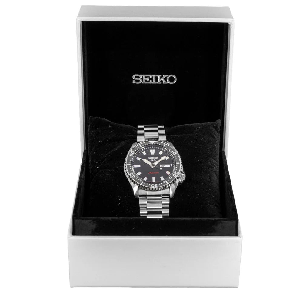 Seiko 5 Sports is known for over fifty years of reliability, durability, performance and value. ‘’5’’ represents the original five key features of every Seiko 5 still present today: Automatic movement, Day-date display, Water Resistance, Recessed crown and Durable case and bracelet.