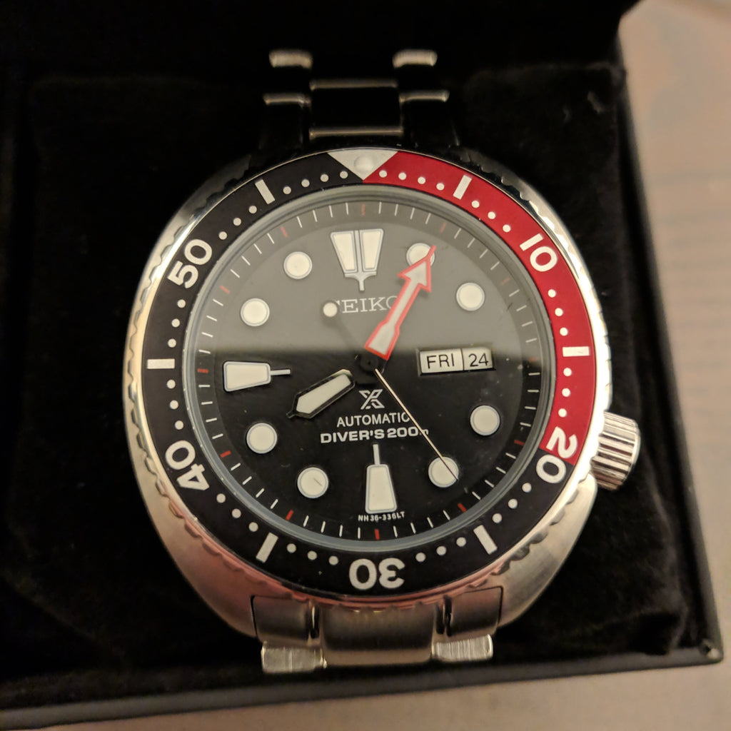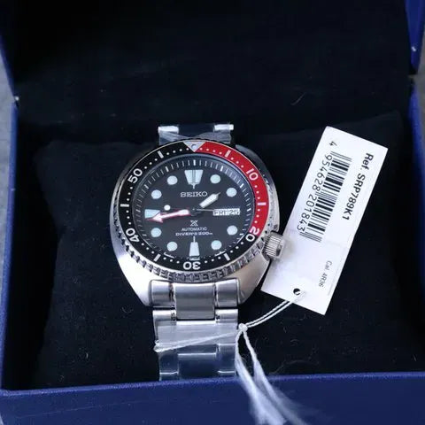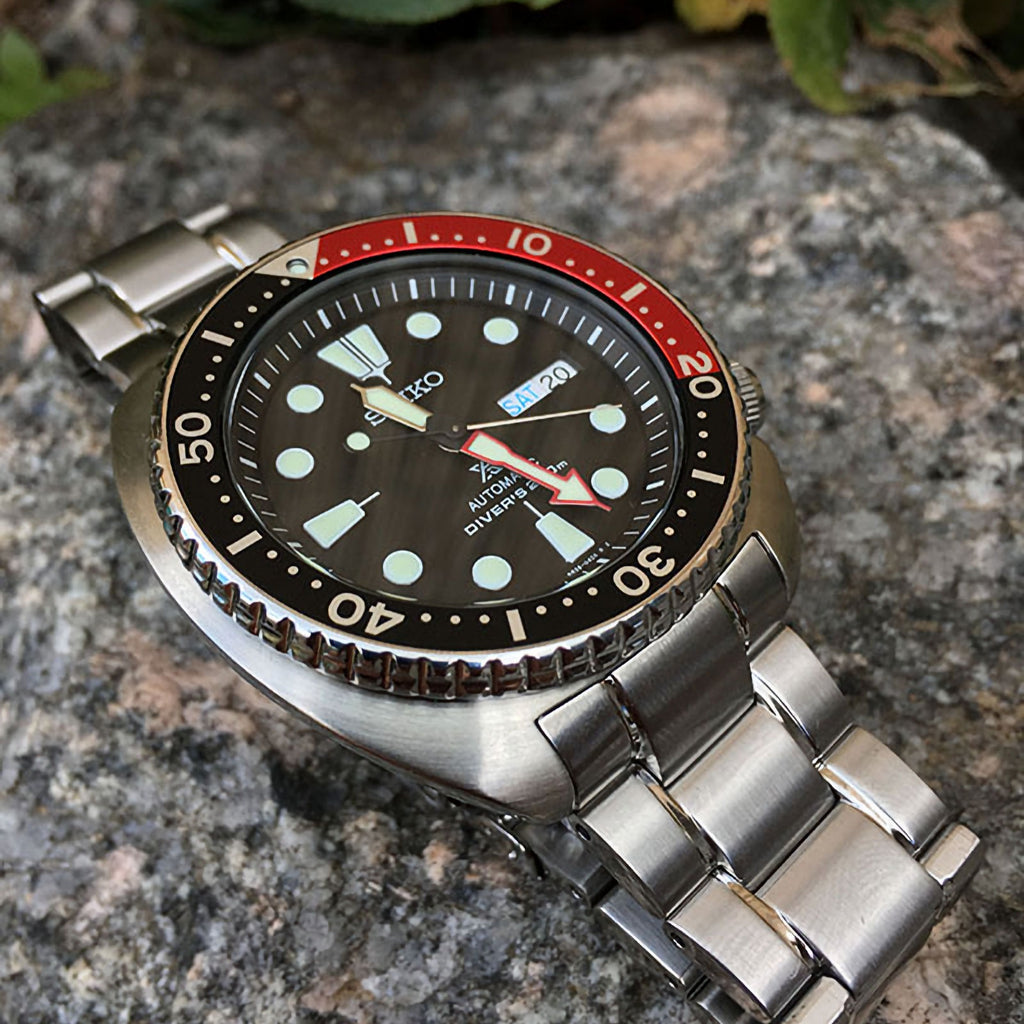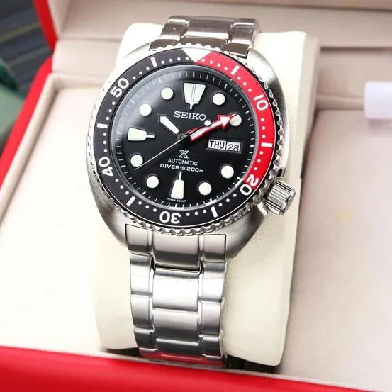 Designed with the diver in mind, the Turtle's iconic cushion case offers exceptional wrist presence and durability. The unidirectional rotating bezel ensures precise dive timing, while the screw-down crown provides enhanced water resistance. At home on the wrist or in the depths, this Seiko combines Japanese craftsmanship with timeless design. Perfect for watch enthusiasts and professional divers alike, the Prospex Turtle represents exceptional value in the automatic dive watch category.