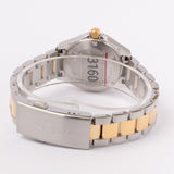 The TAG Heuer Aquaracer Quartz Ladies Mother of Pearl Steel & Yellow Gold Coating Watch has a stainless steel case. The rotating bezel has a gold coating and is set with 35 diamonds. The white mother-of-pearl dial perfectly complements the gold finish of the hands and hour markers. The watch is equipped with a Swiss Quartz movement, which is powered by batteries.