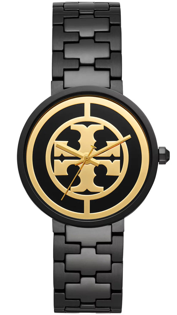 A three-link bracelet in bold black steel connects this Reva timepiece from Tory Burch. Style #TBW4039