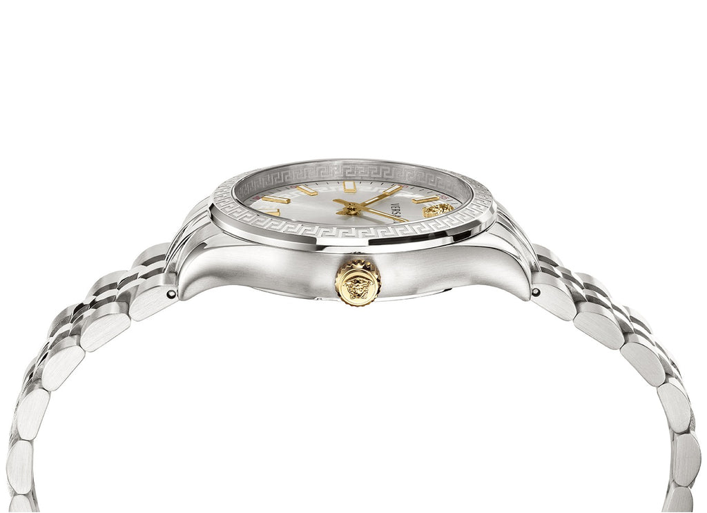 Hellenyium Womens for the Versace woman who wants to feel elegant and timeless chic Its look recalls the iconic symbols of the brand such as the Greca engraved on the top ring, the medusa 2 D at 12 h The strap proposal is sporty urban, while the metal band confers a look for every day and evening occasion